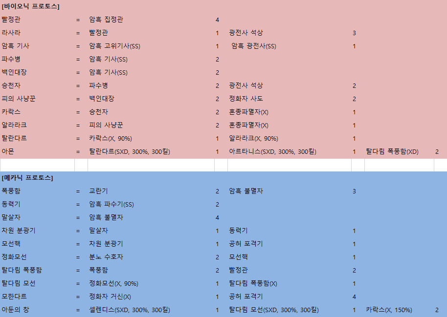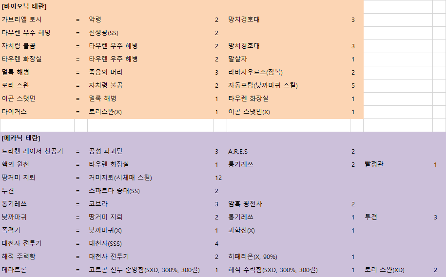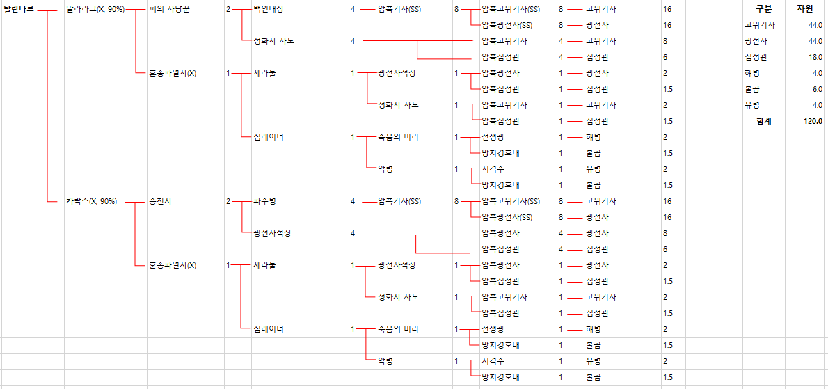 ㅁ 유닛별로 얼마만큼의 자원이 필요한지 이렇게 봐야 계산이 되네요.