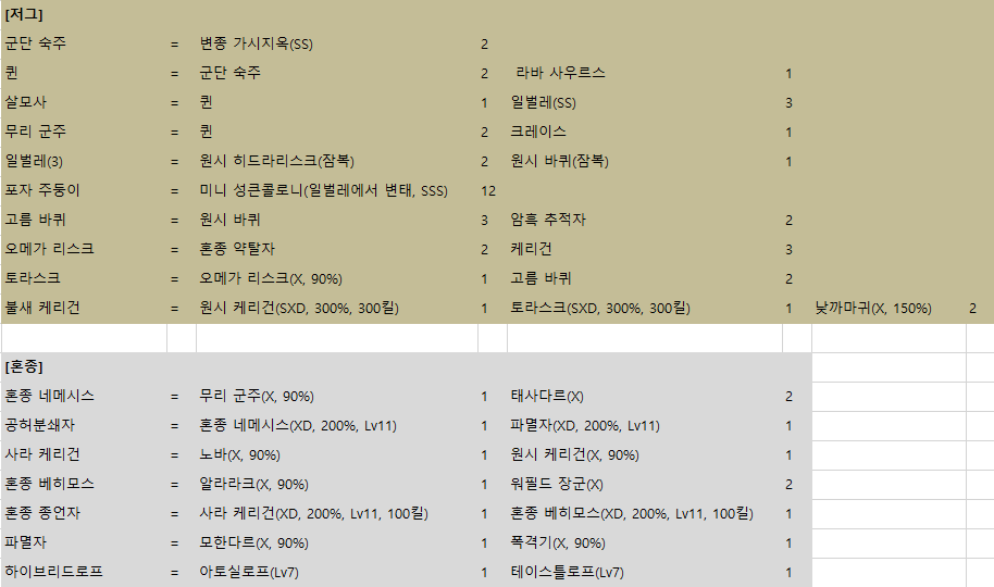 - 히든 조합표가 있긴 하지만, 따라서 만들기가 쉽지 않습니다.